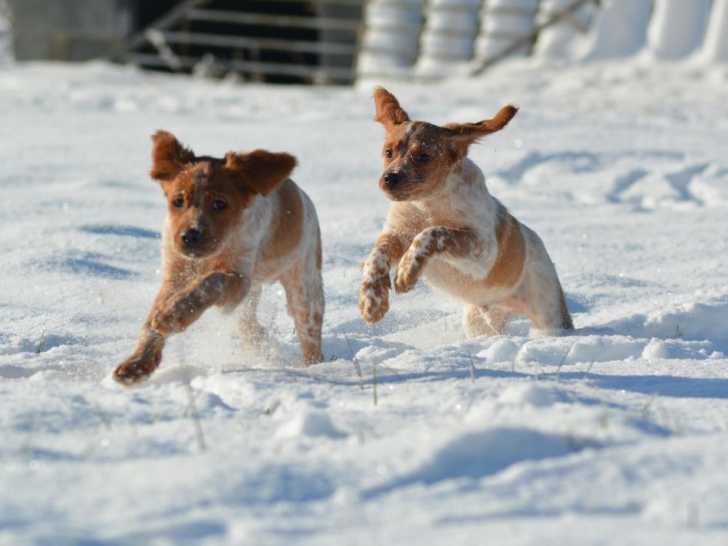 Arno et Achille sont deux chiots Épagneuls Bretons pleins de promesses. Ils grandissent dans un environnement stimulant et apprennent à interagir avec passion au sein de notre élevage professionnel.