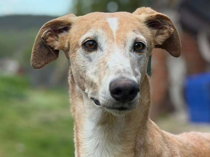 Je suis un Galgo calme, équilibré, sociable et facile à vivre, idéal pour une famille souhaitant un compagnon à la fois doux et joyeux.