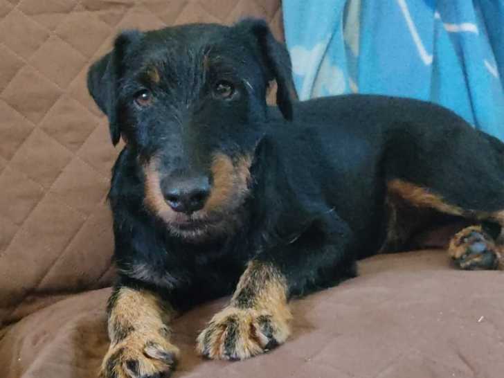 C'est peut-être un chien croisé, il a le tempérament et le comportement du Jagdterrier. C'est un loulou courageux et avec du tempérament. Il est propre en intérieur, il ne détruit rien. Il aime le calme et, d'un certain côté, il préfèrera qu'il n'y ait pas d'enfant.