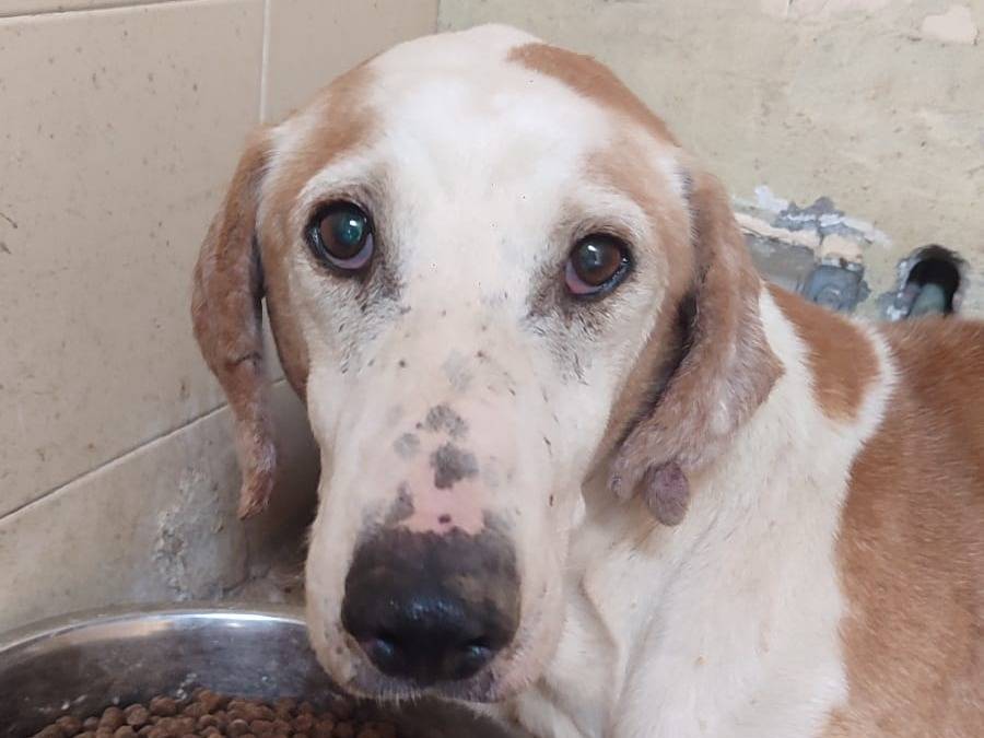 Pongo est un chien âgé, marqué par une vie rude, et il affronte aujourd’hui un hiver difficile au refuge, dans le froid et l’attente.