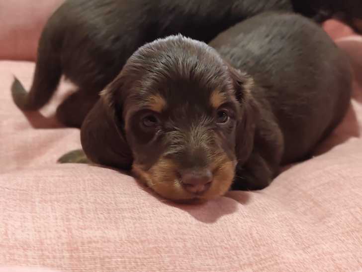 Chiot élevé avec soin, au contact de la famille, habitué aux manipulations et à la vie quotidienne.