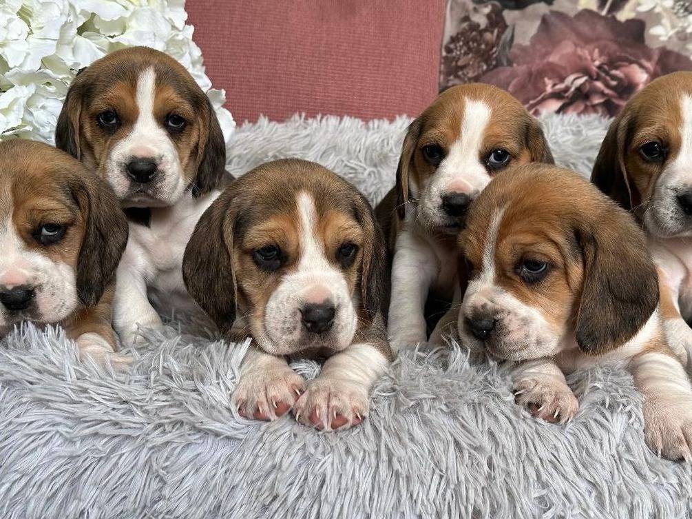 L'élevage Aux pays des Toutous, passionné par le Beagle depuis plus de vingt-cinq ans, propose une portée de sept chiots inscrits au Livre des Origines Français (LOF), nés le 25 février 2026. La portée se compose de cinq mâles et de deux femelles, dont un mâle déjà réservé. Les mâles sont proposés au prix de 950 euros chacun et les femelles à 1 100 euros chacune.