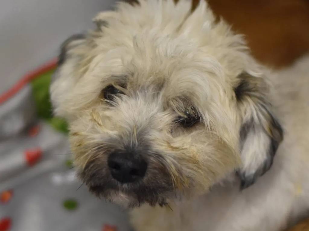 De couleur blanche, Fluffy est un chien de trois ans. Peu confiant au premier contact, il devient très affectueux lorsqu’il connaît bien la personne et s’entend bien avec les autres chiens.