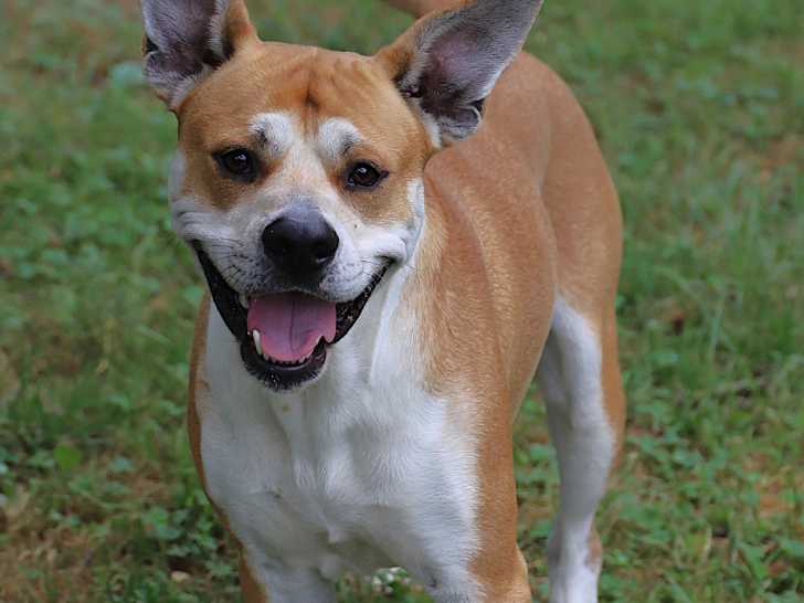 Voici Vyper, un jeune chien Dogue âgé d’un an, arborant un pelage marron et blanc, que nous proposons à l'adoption. Il aspire à trouver une famille aimante pour une vie épanouie.