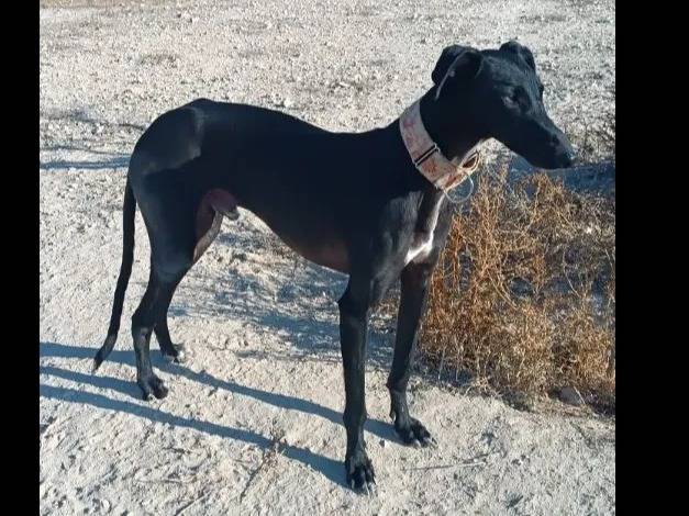 Nous avons le plaisir de vous proposer Pinillo, un chien Galgo au pelage noir avec marque blanche, âgé de trois ans. Très doux, affectueux et amical, il apprécie la compagnie des autres chiens et s’entend avec les enfants. Un jardin est nécessaire pour son bien-être.