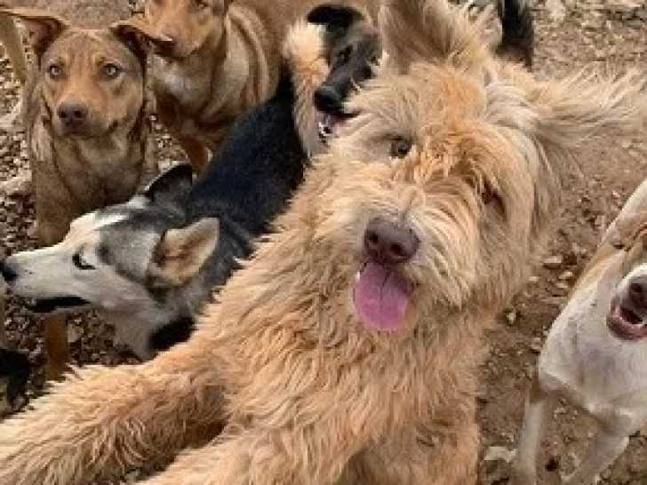 Découvrez Brioche, un chien Griffon au pelage sable, âgé de deux ans. Plein d'énergie et très joueur, il s'entend à merveille avec les autres chiens. Il aura besoin d'une famille active disposant d'un grand espace extérieur, idéalement à la campagne, afin de pouvoir se dépenser pleinement au quotidien.