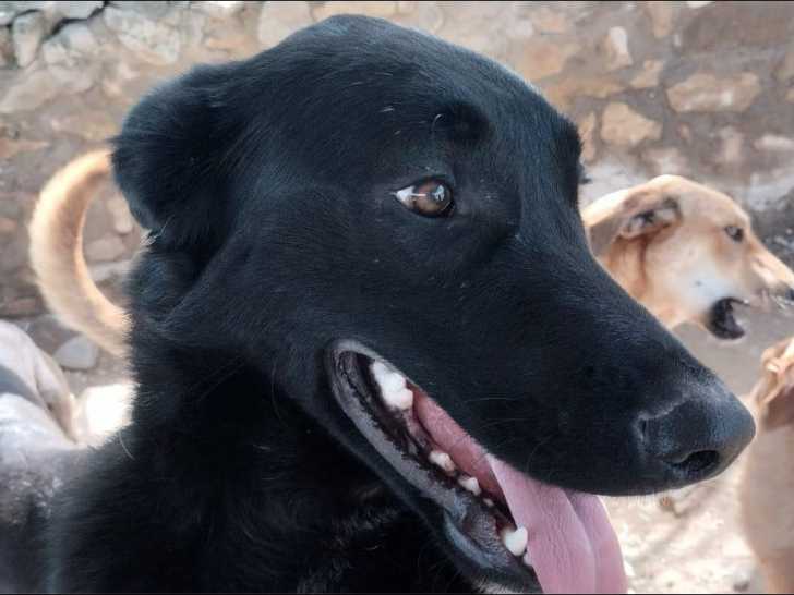 Arboré d'un pelage noir avec marque blanche, Rejon est un jeune chien d’un an qui aspire à trouver une famille aimante qui saura prendre soin de lui.