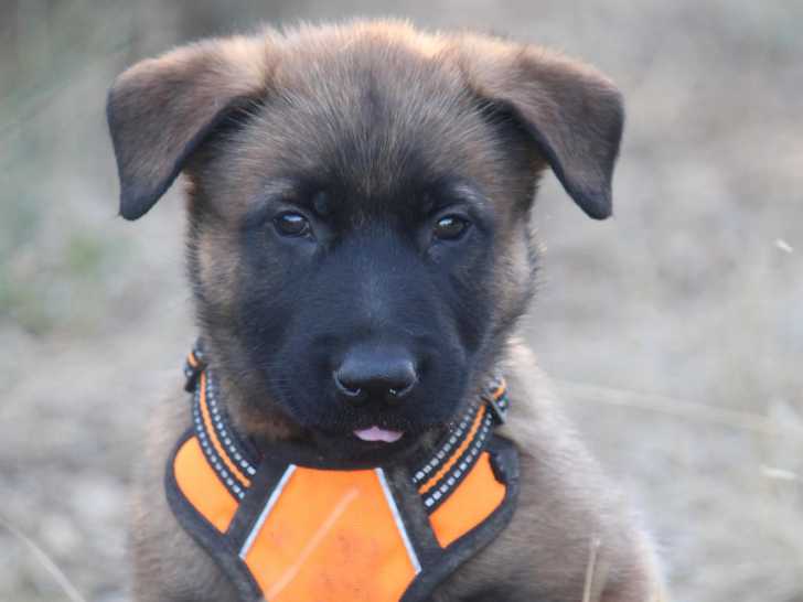 Âgé de trois mois, Nira est un chiot femelle Berger Malinois au pelage fauve charbonné que nous sommes ravis de vous proposer à l'adoption. Nous ne vendons pas nos chiens, mais les mettons à disposition...