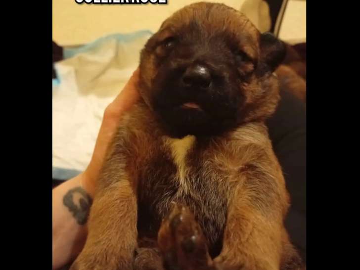 Voici Rosa, un chiot femelle au pelage fauve charbonné de deux mois, active, gourmande et joueuse qui aime chahuter avec sa fratrie. Elle cherche une famille attentionnée pour l’aider à grandir sereinement et continuer son apprentissage.