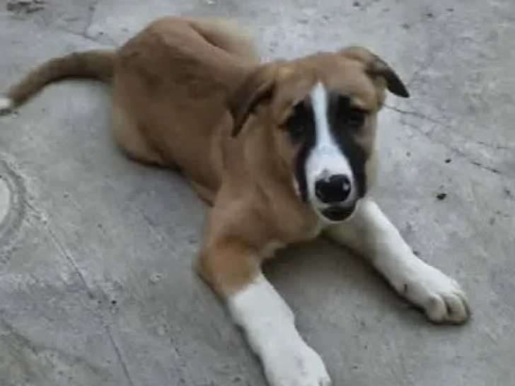 De couleur marron et blanche, Haku est un chiot mâle Mâtin Espagnol marron et blanc de quatre mois que nous proposons à l'adoption. Il a beaucoup d'amour à donner.