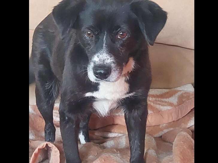 Nous proposons à l'adoption une chienne au pelage noir avec marque blanche âgée de onze ans nommée Shadow. Celle-ci n'est pas avec des enfants et aura besoin de temps et de douceur pour donner sa confiance.