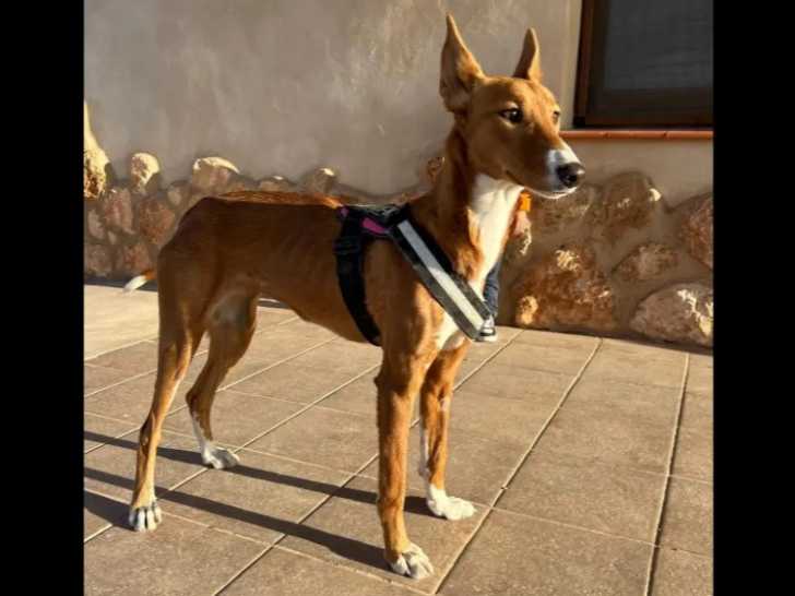 Cette chienne Podenco au pelage caramel d'un an nommée Nube est à la recherche d'une famille aimante. Elle s'entend bien avec des enfants ainsi qu'avec ses congénères.