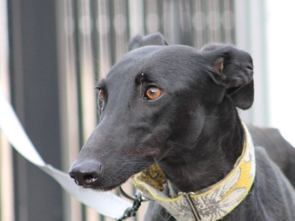 Puma est une Galga née en juin 2023, au pelage noir brillant comme une nuit d’été.