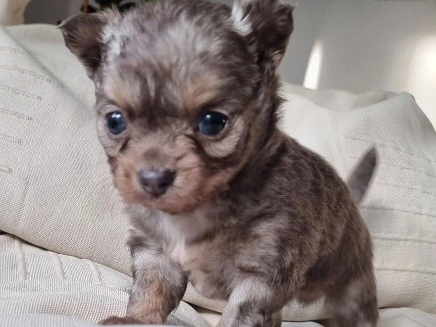 Blue, un magnifique petit mâle Chihuahua lavande et tan, né en janvier 2026, sera disponible à partir du 16 mars. Équilibré, joueur et très câlin, il est issu de parents pure race. Son papa est LOF confirmé,...