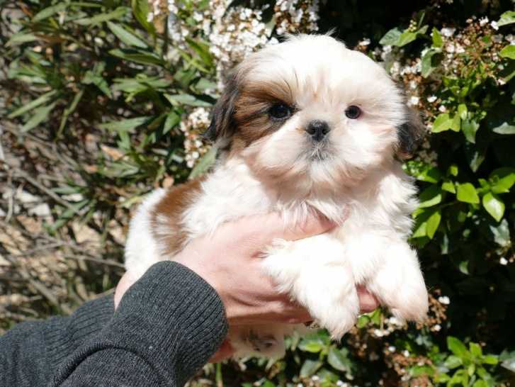 Nous vous proposons trois chiots Shih Tzus mâles nés le 01 mars 2022 avec un pelage marron et blanc.