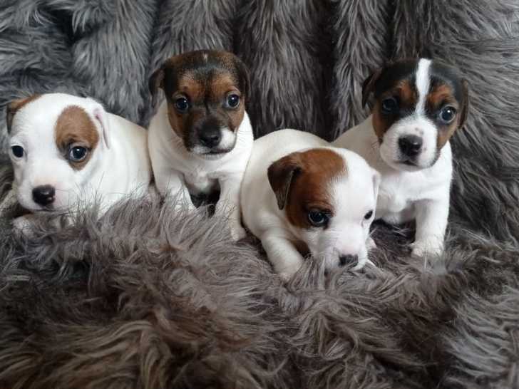 Sur une portée de Jack Russell Terriers née le 21 mars 2022, nous proposons à la réservation quatre mâles. Ceux-ci seront disponibles vers fin mai 2022. Les chiots sont issus de l'union de Raymonde du Domaine des Pattes Dorées et Lester du Domaine Brunemont, et tous les quatre sont déclarés au Livre des Origines Français (LOF).