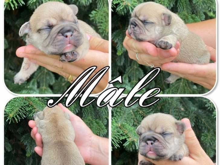 Nous avons des chiots Bouledogues Français nés le 09 août 2022, qui sont disponibles à la réservation : une femelle blanche, deux mâles fauve et un mâle noir.