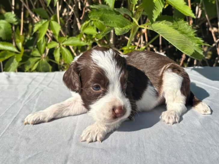 Nos chiots Springer Spaniel sont de beaux petits nés le 17 octobre 2025. Un mâle et deux femelles grandissent en famille et sont habitués aux contacts humains. Ils seront remis pucés, vaccinés, avec...