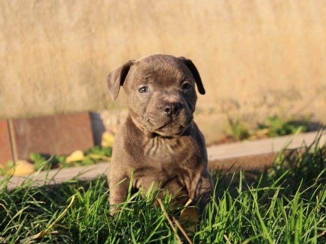 Nous proposons à la réservation une portée de 6 superbes bébés Staffordshire Bull Terrier nés le 20 août 2025, inscrits au Livre des Origines Français (LOF). Trois femelles sont bleues et une noire, les deu...