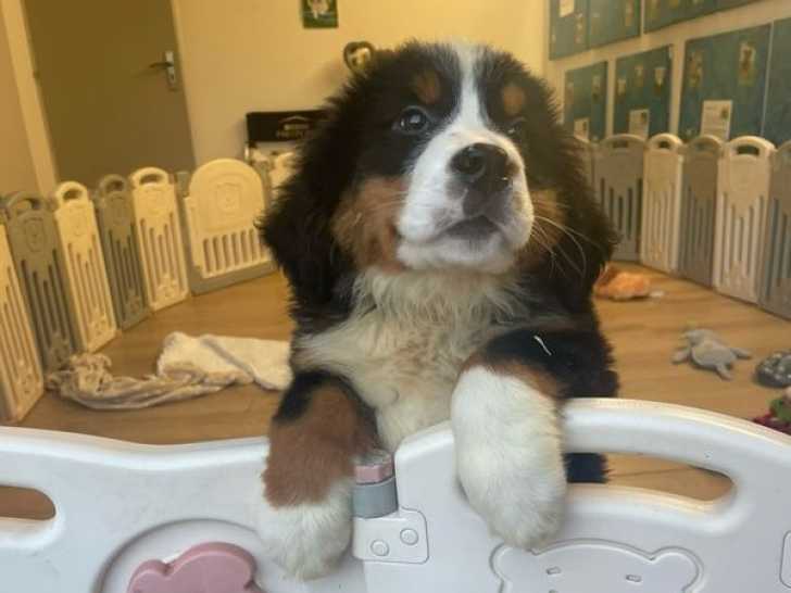 Notre domaine canin La Plume Herlinoise présente une portée exceptionnelle de chiots Bouviers Bernois, élevés au sein de la famille. Les petits seront disponibles après leurs vaccins, parfaitement socialisés.