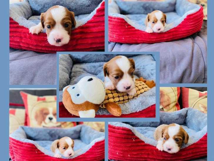 Notre élevage propose trois chiots Cavalier King Charles nés le 27 octobre 2025, élevés en famille. Il reste une femelle et deux mâles de petit gabarit, noir et feu, disponibles à partir du 20 décembre. Les...