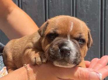 La réservation continue pour un chiot Staffordshire Bull Terrier né le 29 mai 2022 dans une portée de deux. Il s’agit d’un mâle doté d'une robe rouge bicolore et inscrit dans le Livre des Origines Français (LOF).