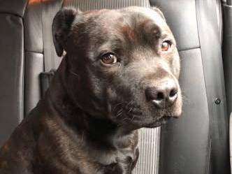 Voici Sam, un adorable Staffordshire Bull Terrier mâle de 5 ans au magnifique pelage bringé. 🐕✨