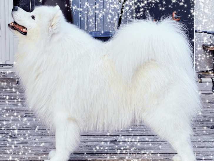 Mon magnifique jeune mâle Samoyède de pure race, Tiamo, est disponible pour saillie. Il mesure 60 cm au garrot et pèse 23 kg. Il a une robe blanche et son type est ours. Il est issu d'une très belle lignée LOF....