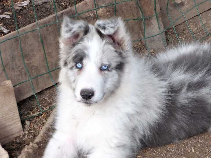 Un magnifique et adorable chiot Border Collie à la robe slate merle (bleu merle dilué), né le 9 septembre, non LOF, est à vendre.