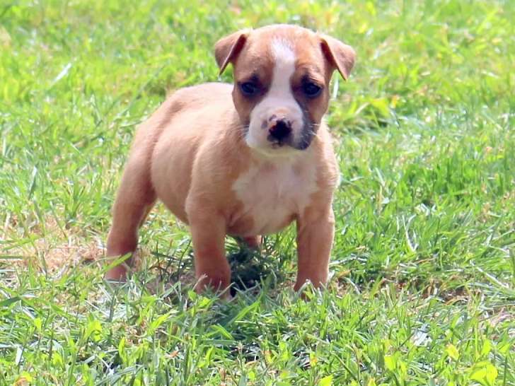 De superbes chiots Amstaff LOF seront disponibles le 7 mai.