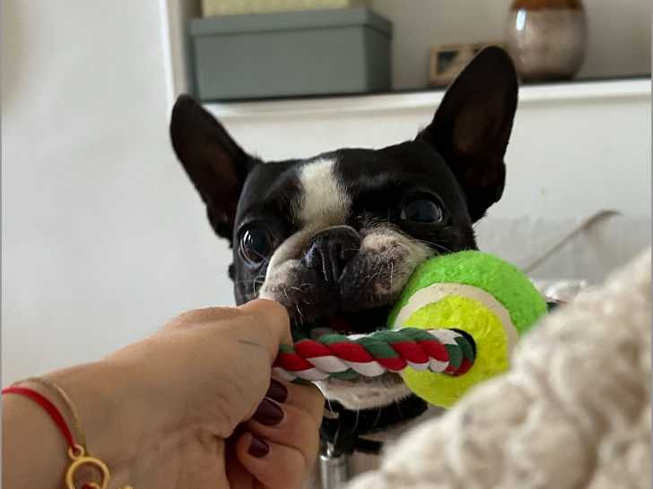 Oscar, notre adorable Boston âgé de 7 ans, aimerait trouver l'amour et faire des bébés avec une belle demoiselle.