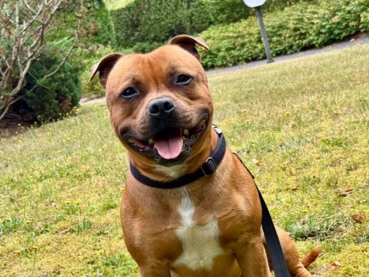 Je vous présente Quark, mon magnifique Staffordshire Bull Terrier de 15 mois, au caractère exceptionnel.