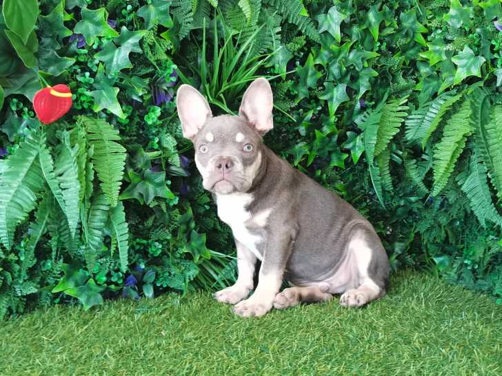 Je suis éleveur professionnel et je vous propose à la vente un superbe mâle Bouledogue Français exotique né le 12/04/22. Il est disponible dès maintenant, au prix de 2990 euros. Il est de couleur lilas tan.