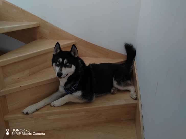 Notre association vous propose d'accueillir chez vous cette chienne Husky Sibérienne au pelage noir et beige d’un an nommée Mara. Celle-ci recherche une famille sportive, sans chats et sans enfants de bas âge...
