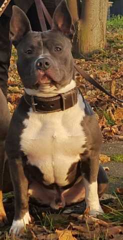 Je vous propose pour une saillie mon chien mâle Paco, un American Staff né le 16/10/2019. Il est de couleur bleue à plastron blanc. Il est inscrit au LOF et confirmé. Il est sain d’ataxie et a été évalué 1/4...