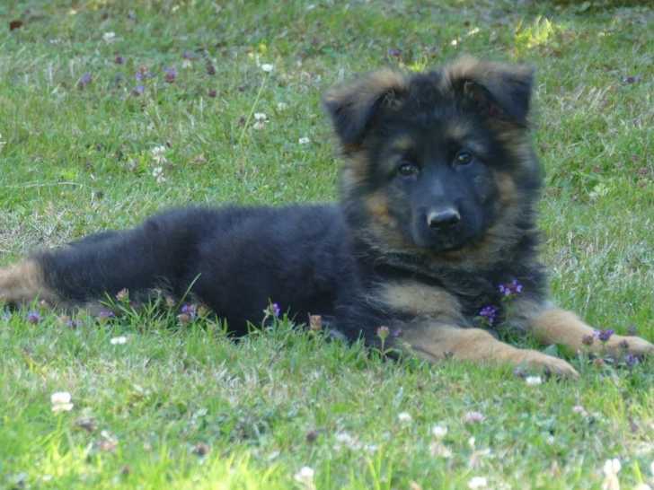 Notre portée de six chiots Bergers Allemands poil long, nés le 7 août 2025 et inscrite dans le Livre des Origines Français (LOF) sous l'affixe "du Clos de la Chanson", présente des robes noires et feu. Ils sont...
