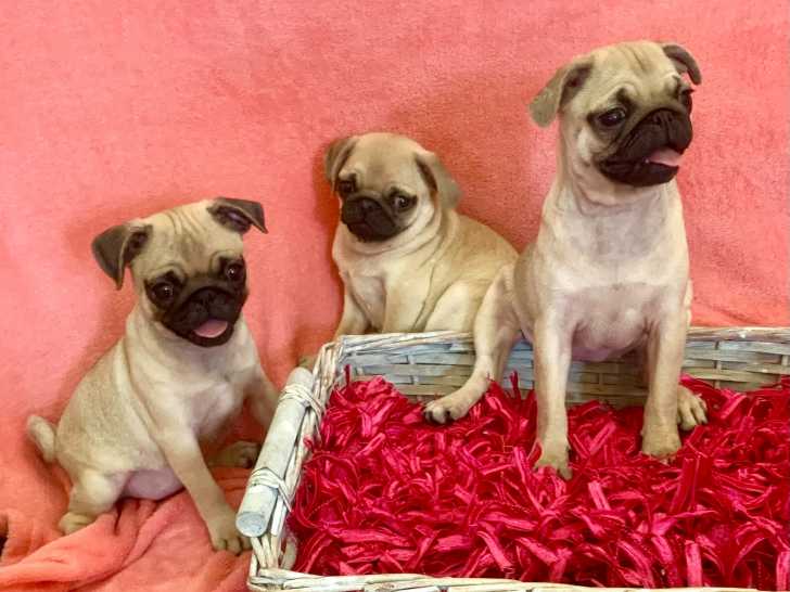 Nous avons le plaisir de vous proposer trois adorables petites femelles Carlin nées le 07/05/2022, au sein d’une portée de 4 petites.