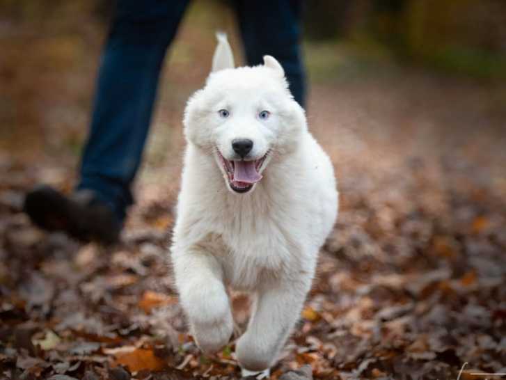 En vente dans notre élevage, un chiot mâle de race Laïka de Yakoutie au pelage blanc né le 29 août 2021 de parents testés négatifs aux maladies génétiques existantes.