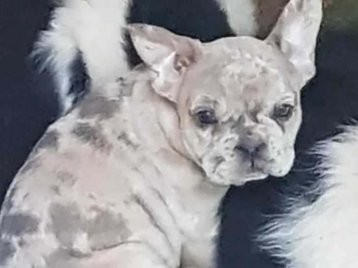 Nous présentons à l’achat Précieux, un chiot Bouledogue Français au pelage bleu fauve silver merle né le 03 novembre 2021 d’une mère de couleur bleue et d’un père bleu merle.