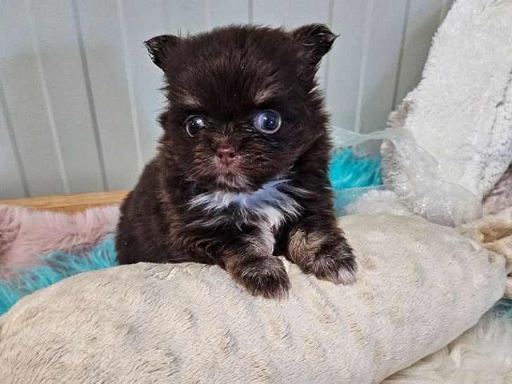 Une portée de cinq adorables Chihuahuas à poils longs est née le 20 août 2025 dans notre élevage. Nous proposons à la réservation des mâles chocolat et noir tricolore, ainsi qu'une femelle fauve pour 1200 euros...