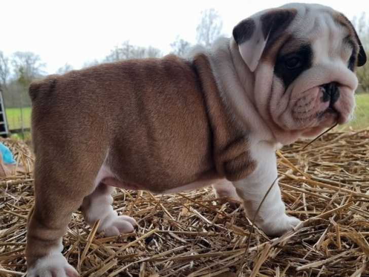 Nous sommes des professionnels du Bulldog Anglais à l'élevage Du Clos D'Autrefois, un petit élevage familial passionné depuis 14 ans. Actuellement, nous avons des chiots de cette race, 5 petits nés le 03 février 2025, parmi lesquels une femelle (Alice) est encore disponible à la réservation pour 2700 euros.