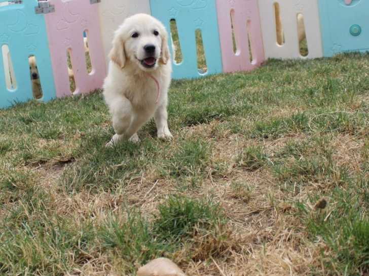 Un chiot Golden Retriever est mis à la vente à l’élevage Le Royaume des 4 Pattes.