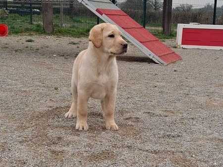 Stanley est un chiot Labrador Retriever mâle né le 22 décembre 2021. Il est mis en vente pour compagnie et non pour reproduction, car il lui manque un testicule (non descendu).