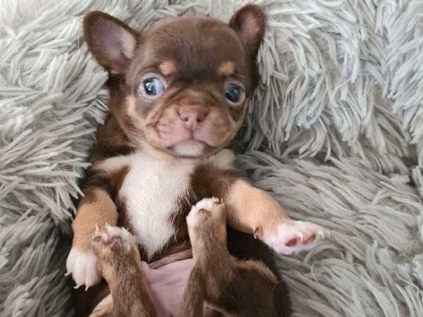 Nous sommes heureux de proposer à la réservation un chiot mâle Chihuahua né le 05 avril 2022 de parents testés aux maladies de la race. Ce chiot est de couleur chocolat et à poil court, il est vendu à 950 euros.