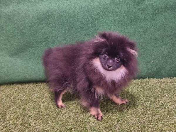 Nous recherchons une famille pour ce chiot Spitz Poméranien de couleur noire et feu, et qui a vu le jour le 5 juin 2021.