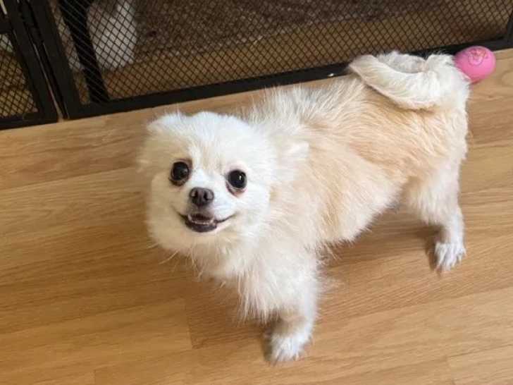 Notre élevage vous informe de la disponibilité d’une chienne Spitz Allemand blanc crème, née le 24 novembre 2022, inscrite au Livre des Origines Français (LOF).
