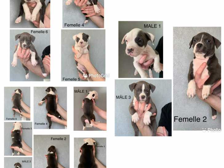 Nos magnifiques chiots de race American Bully micro/pocket sont à vendre. Ils sont nés le 31/01/2026 et sont disponibles à partir du 28/03/2026. Il y a : - 3 mâles (photos 1,2 et 3); - 2 femelles (photos 4...