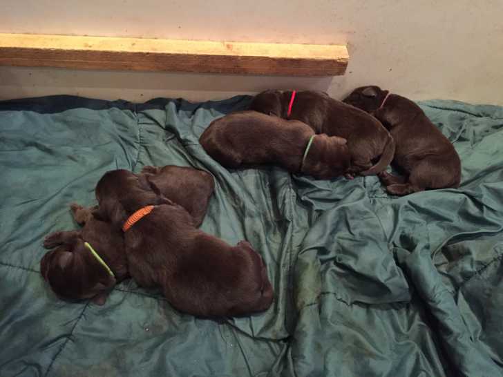 Vends chiots Labradors chocolats. Ils sont vaccinés, pucés et élevés en famille, à la maison.