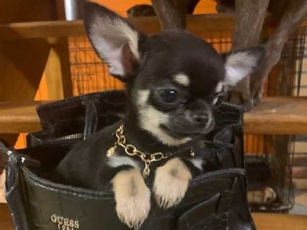 Un chien adulte Chihuahua à poil long, de couleur noir et tan, est proposé sous contrat à notre élevage, au prix de 350 euros. Né le 26 mai 2021, c’est un chien de 2,5 kg, vif, curieux et joueur, parfois un...