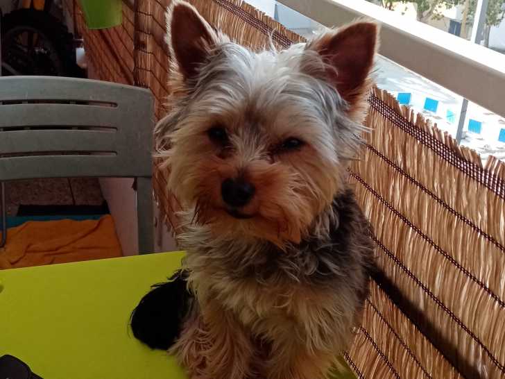 Il pèse 2,8 kg. C'est un Yorkshire Terrier qui n'est pas grand et de couleur fauve. Il est malicieux, filou et en pleine forme physique. Je le propose à la saillie.